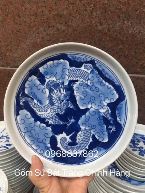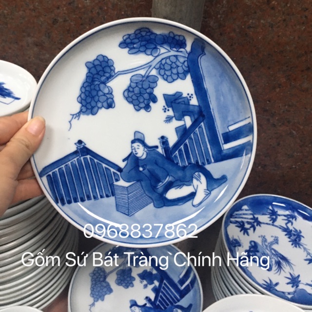 Giới thiệu Đĩa cảnh men lam bát tràng 18cm