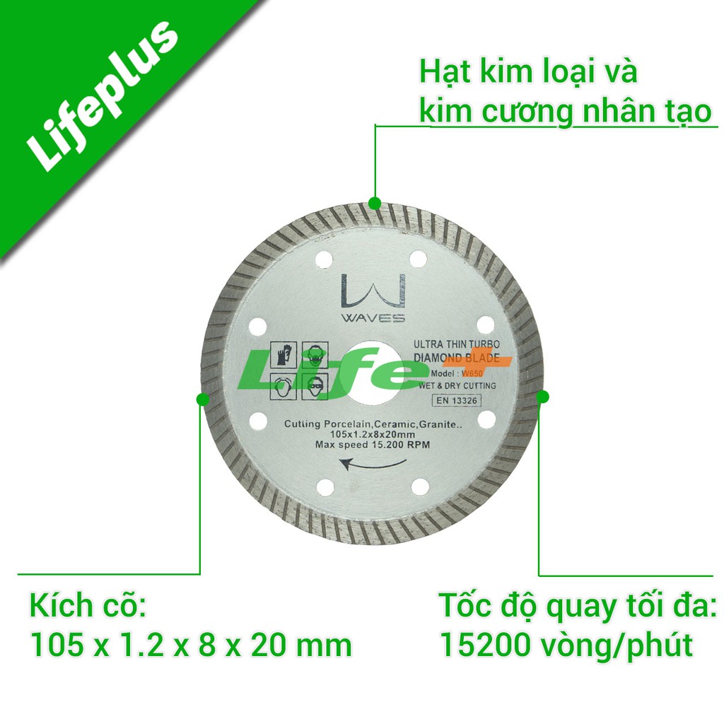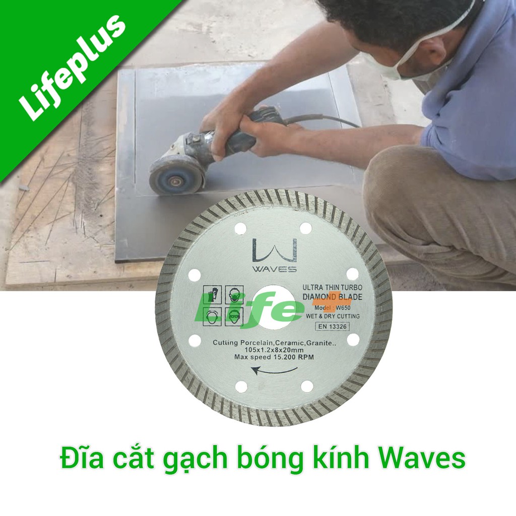 Giới thiệu Đĩa cắt gạch bóng kính siêu mỏng 105x1.2x8x20 WAVES W650-DBK105