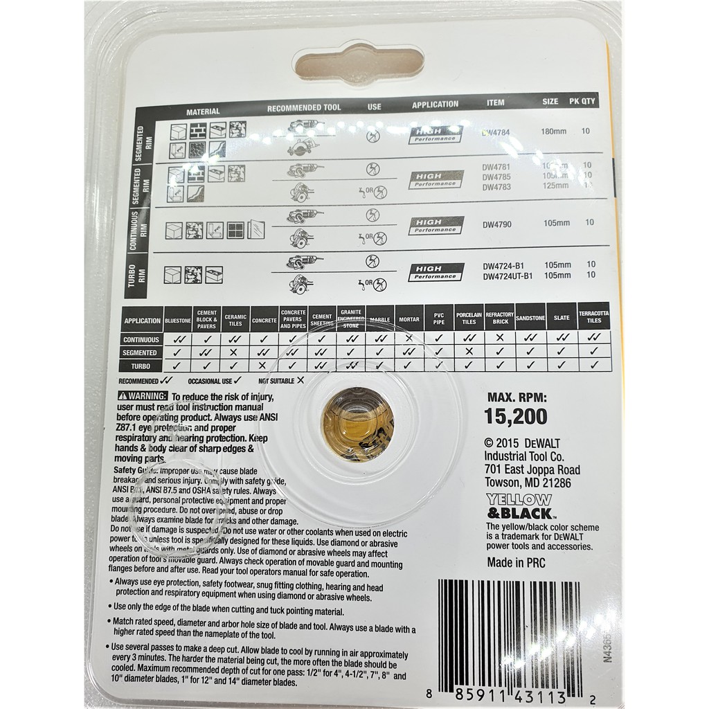Đĩa Cắt Gạch Thường/Ultra Thin 105X16/20X7mm DEWALT DW4724UT-B1 - Chính Hãng - SKU DW4724/4724UT