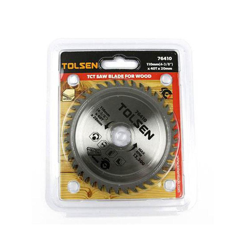 Đĩa cắt gỗ 110mm - 40T tolsen 76410Đĩa cắt gỗ 110mm tolsen mã số 76410 sản xuất từ chất liệu thép cứng cáp có đường kính 110mm với 40 răng dùng cho việc cưa gỗ vv...