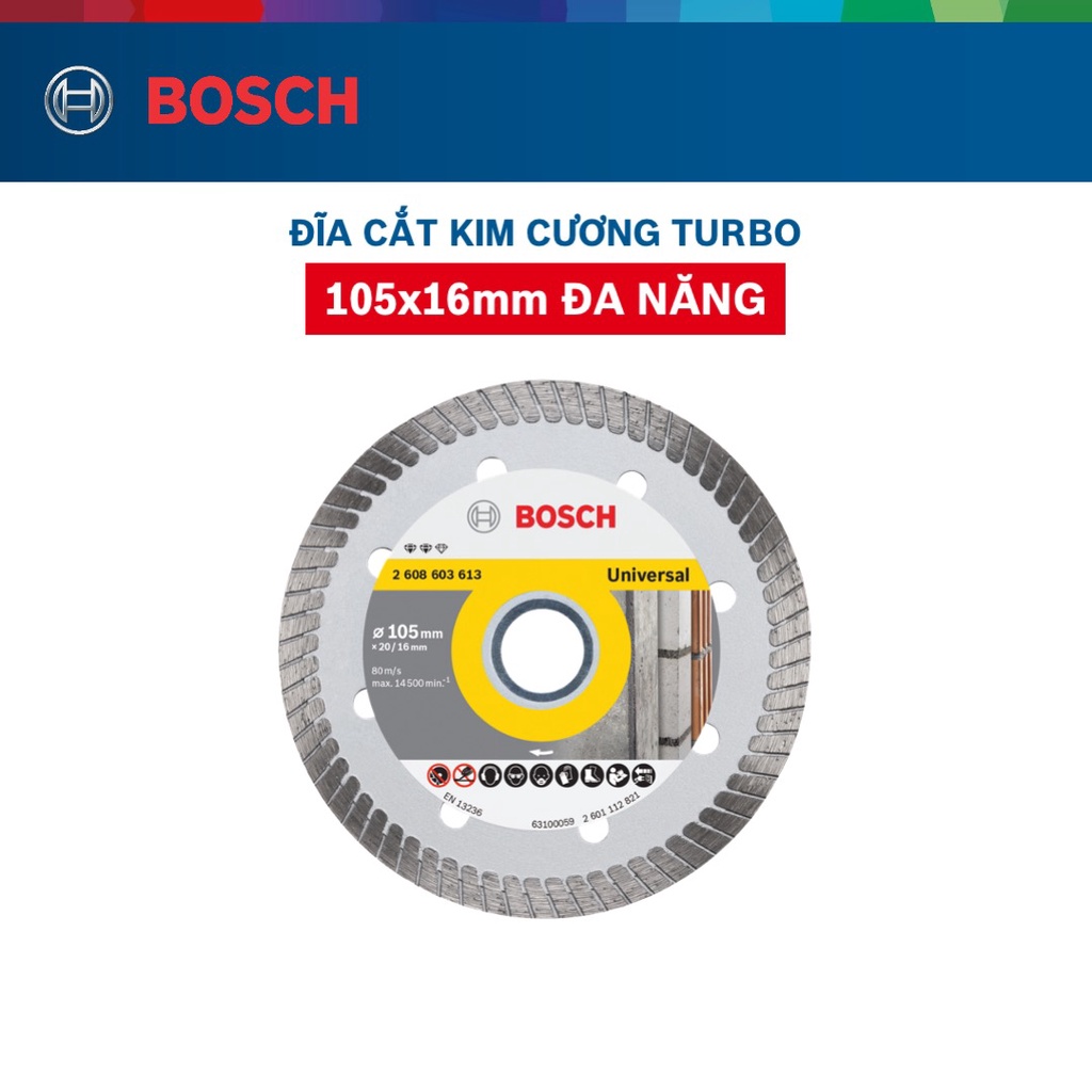 Đĩa cắt kim cương Bosch Turbo 105x16mm đa năng
