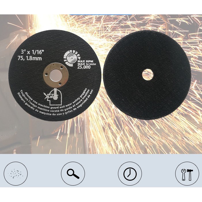 Mô tả tính năng sản phẩm Lưỡi cắt mài 3 inch 75mm dày 1.8mm cắt sắt, thép dùng cho máy mài cắt mini cầm tay:- Được làm bằng vật liệu sợi chất lượng cao, sắc nét và bền hơn.