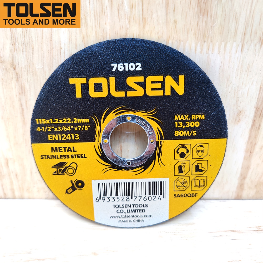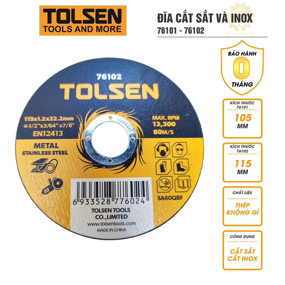 Nhà cửa & Đời sống > Dụng cụ & Thiết bị tiện ích > Dụng cụ > Cưa, máy cắt & máy mài || Đĩa cắt sắt và inox TOLSEN 76101 (105mm), 76102 (115mm)Còn hàng