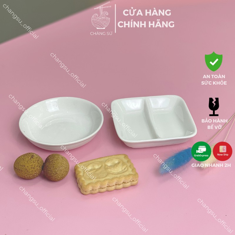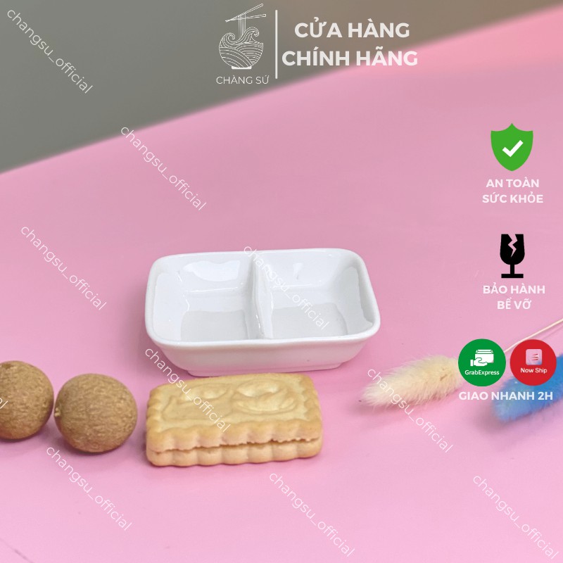 Nhà cửa & Đời sống > Bộ đồ bàn ăn > Dĩa || Đĩa chấm 2 ngăn trắng trơn đựng gia vị, tương cà, muối tiêu, xì dầu, nước mắm - Chén gia vị chia ngăn sứ Minh ChâuCòn hàng