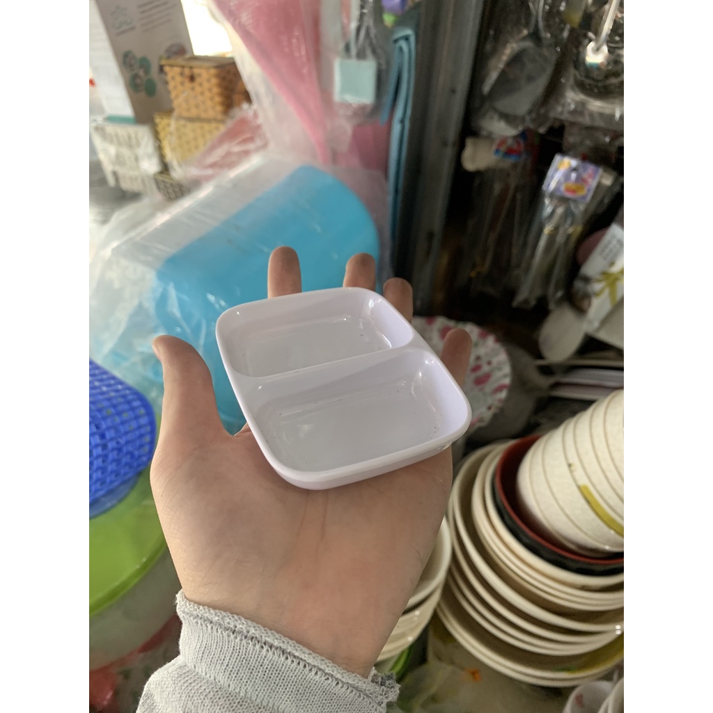 ✔️Đĩa Nhựa Trắng 2 Ngăn Đựng Gia Vị Nước Chấm - Nhựa Việt Nhật - Hàng Việt Nam chất lượng cao