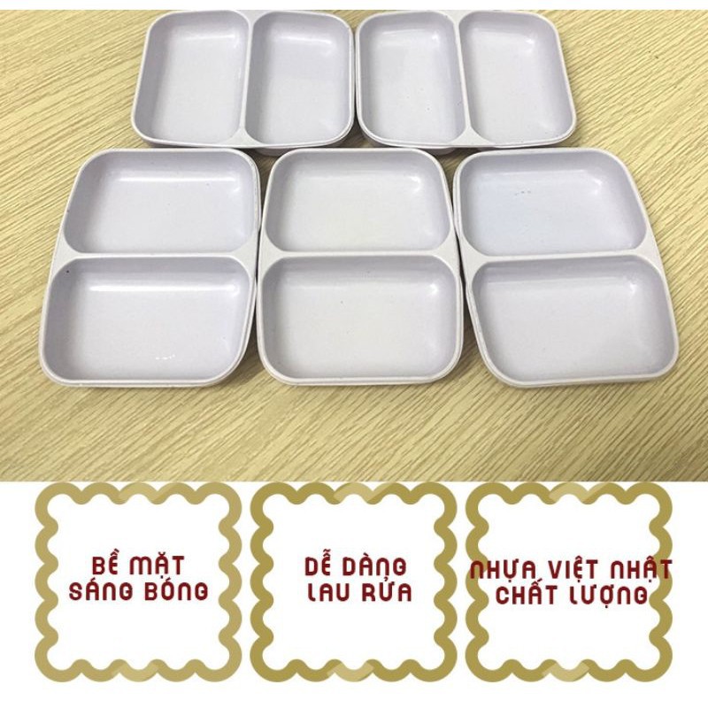 👉Đĩa Nhựa Trắng 2 Ngăn Đựng Gia Vị Nước Chấm - Nhựa Việt Nhật - Hàng Việt Nam chất lượng cao