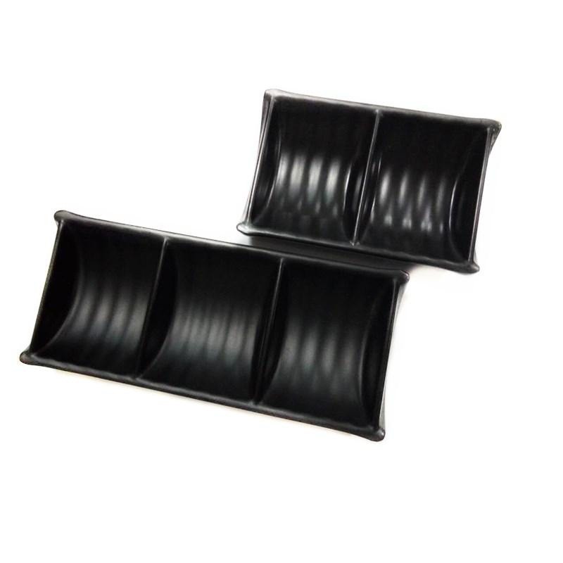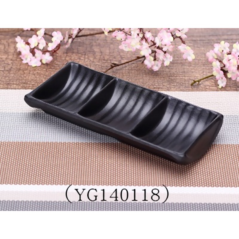 Đĩa chấm 3 ngăn nhựa màu đen cao cấp kiểu hình ống tre 140118