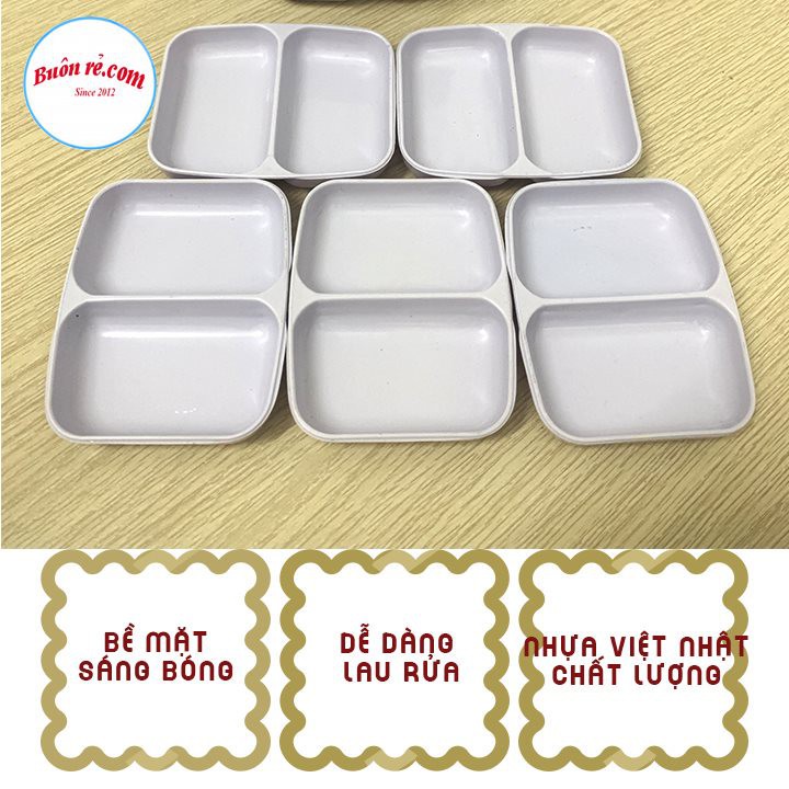 Đĩa chấm phíp 2 ngăn Việt Nhật, bát đựng gia vị nước chấm, đĩa đựng gia vị 2 ngăn mini nhỏ gọn tiện lợi (MS 1205) -01255