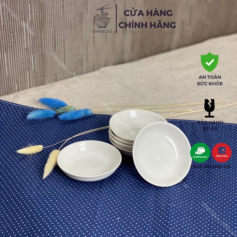 Đĩa chấm sứ đựng gia vị - Dĩa sứ trắng chấm nước mắm, tương xì dầu - Chàng Sứ HC03D