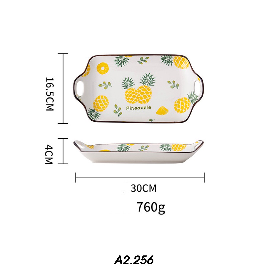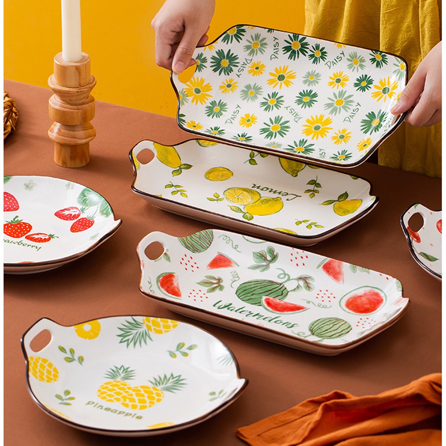 Đĩa chữ nhật, đĩa decor bàn ăn size 30cm họa tiết hoa quả cực xinh