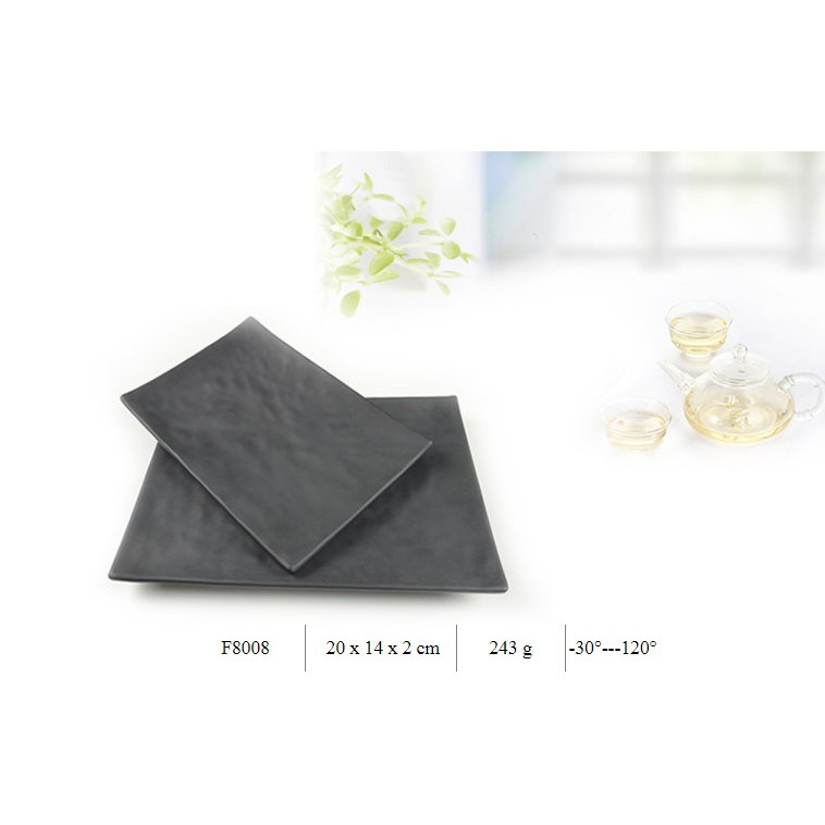 Dĩa Chữ Nhật F8008 Màu Đen Nhựa Melamine Để Thịt Nướng BBQ Buffet