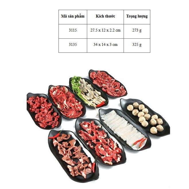 Đĩa chữ nhật kiểu : 3115 - 3135✳️ Chất liệu: Nhựa melamine A5