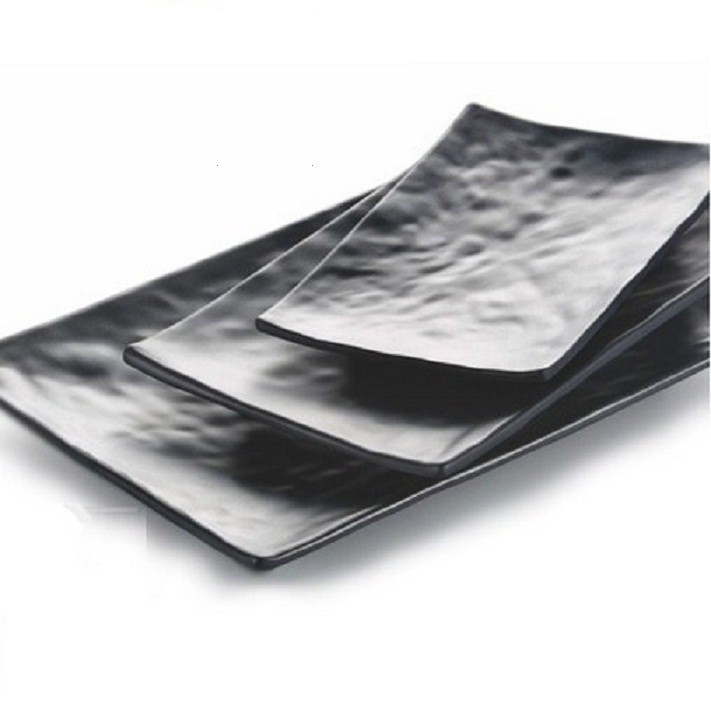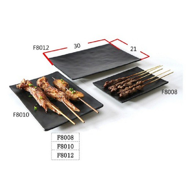 Dĩa Chữ Nhật Màu Đen Vân Đá Để Thịt Nướng BBQ Buffet 30*21*2cm F8012