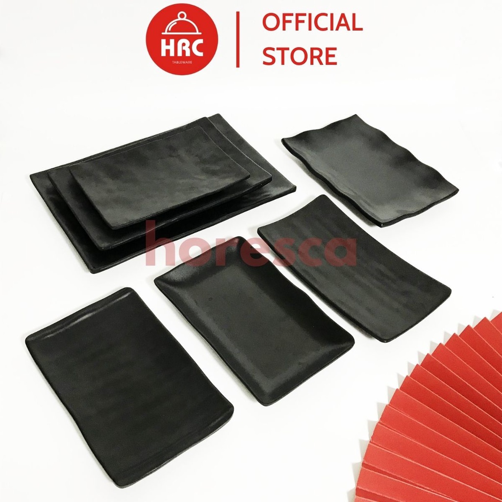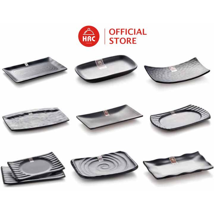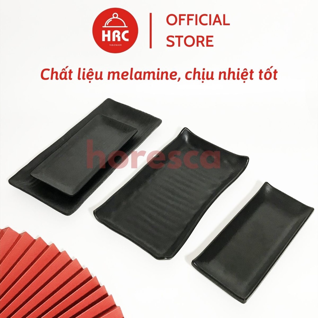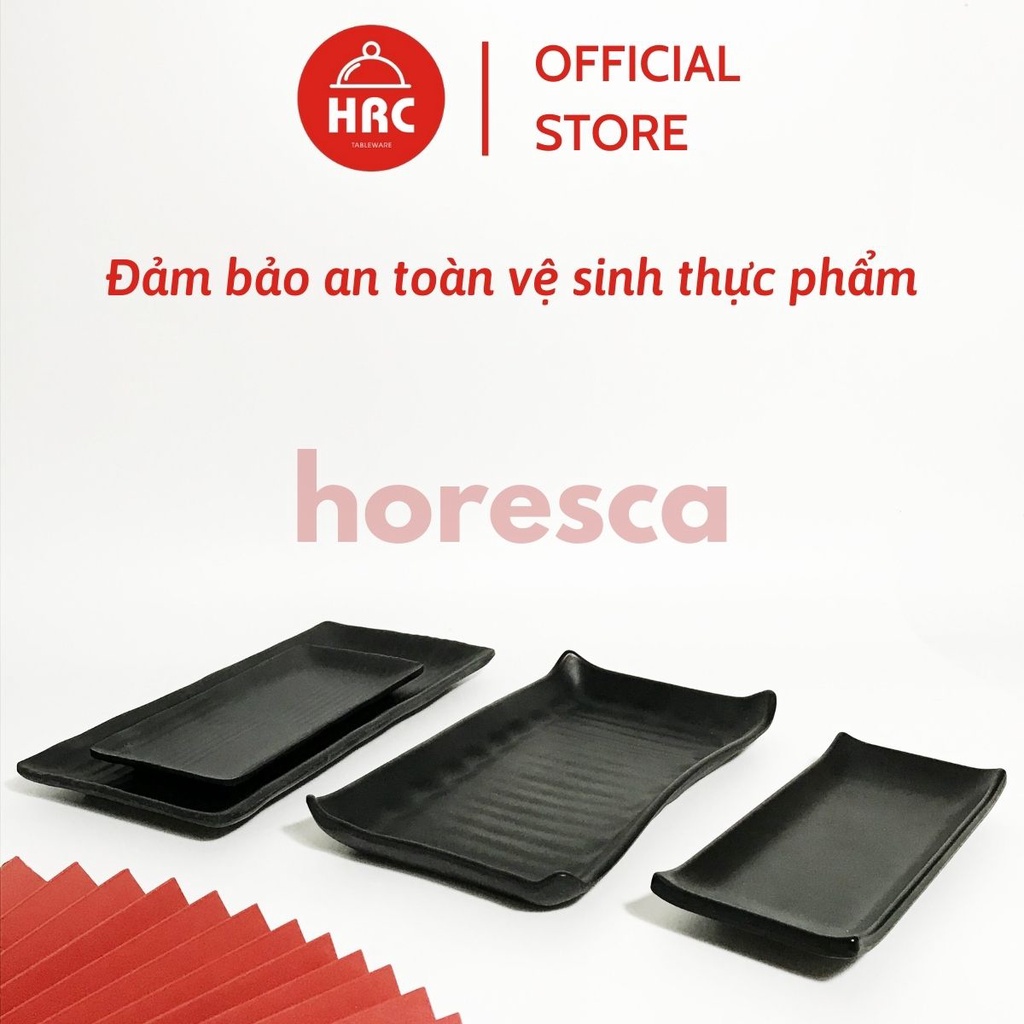 Đĩa chữ nhật melamine [AN TOÀN] [SANG TRỌNG] Đĩa đen nhám melamine đa dạng về kiểu mẫu đủ size
