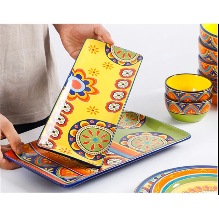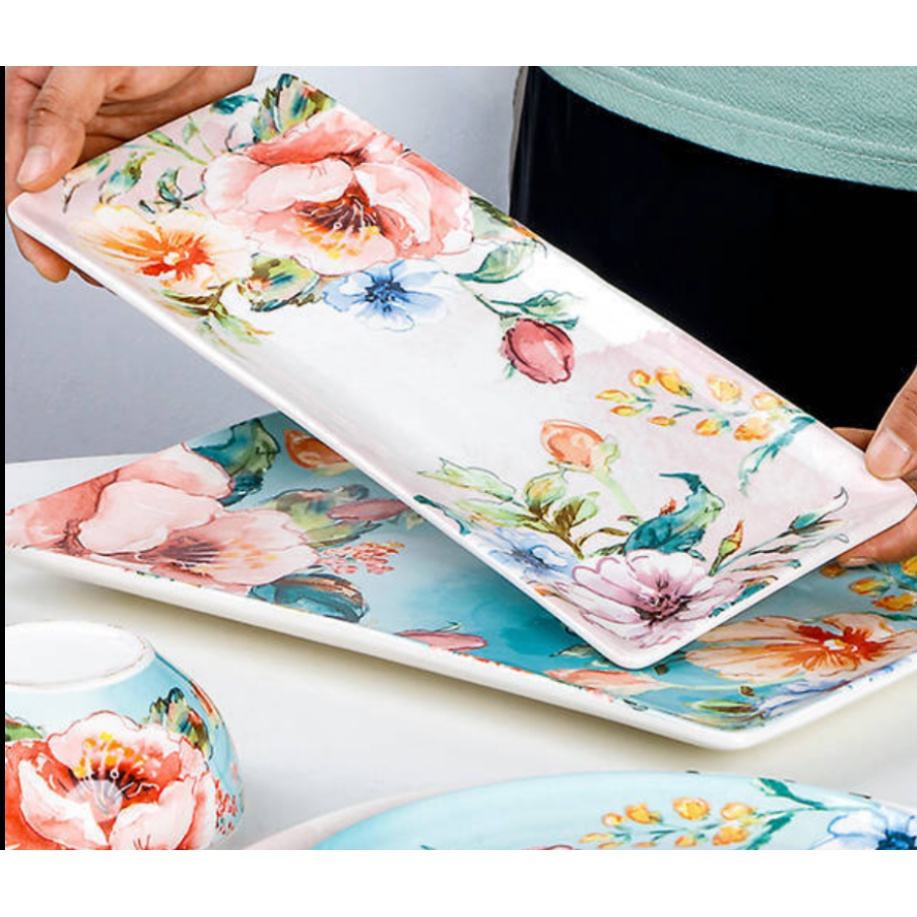 Nhà cửa & Đời sống > Bộ đồ bàn ăn > Dĩa || Đĩa chữ nhật mỹ nghệ vẽ tay, phong cách Châu Âu - An toàn khi sử dụng - Họa tiết sắc nét, tỉ mỉ, phong cách độc lạCòn hàng