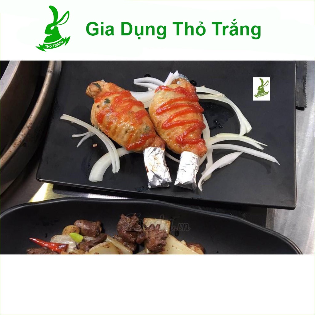 Dĩa chữ nhật cao cấp màu đen nhám với thiết kế cổ điển nhưng không kém phần sang trọng, lòng đĩa được làm trũng nhẹ xuống tạo không gian cho việc trang trí món ăn.Màu đen mờ sang trọng và tinh tế, phù hợp cho các món ăn BBQ, nhà hàng phong cách Hàn Quốc, Nhật Bản.
