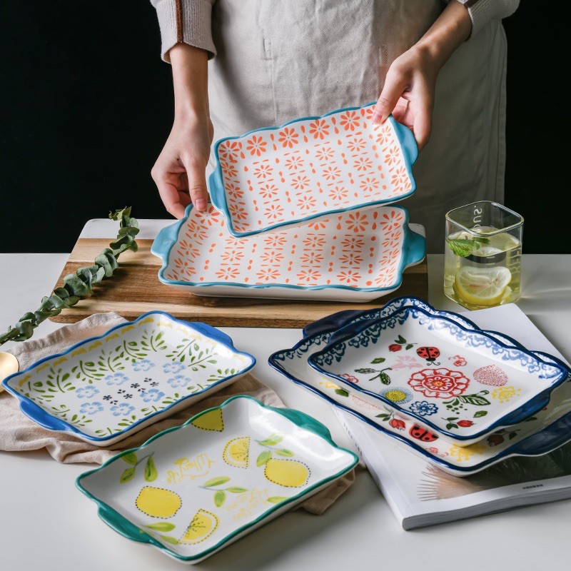 Nhà cửa & Đời sống > Bộ đồ bàn ăn > Dĩa || Đĩa chữ nhật viền sóng Hoa bướm kiểu Bắc ÂuCòn hàng