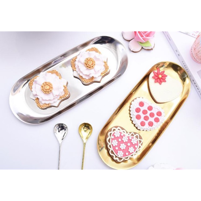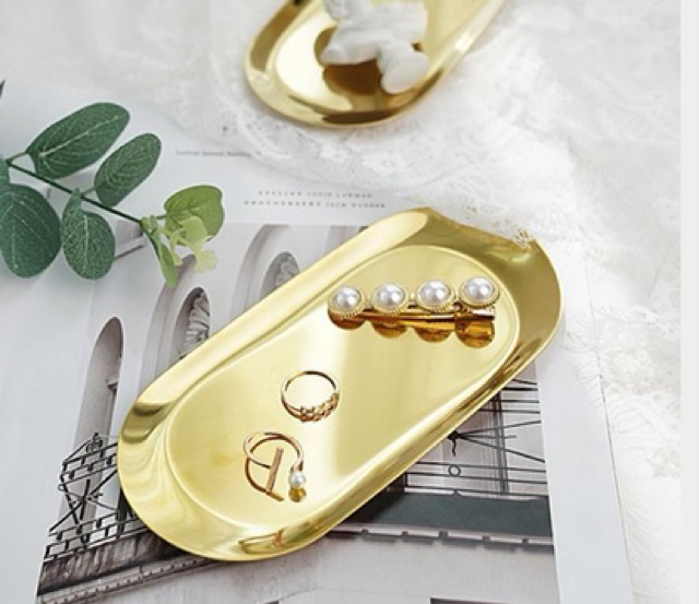 Đĩa chụp sản phẩm , phong cách bắc âu sang trọng . Chất liệu hợp kim mạ màu bóng bẩy , phù hợp dùng cho các shop chụp trang sức , mỹ phẩm , phụ kiện nhỏ ....Kích thước : 23,5cm x 9,5cm