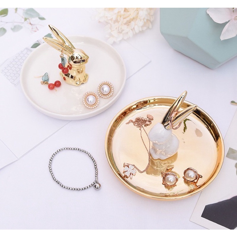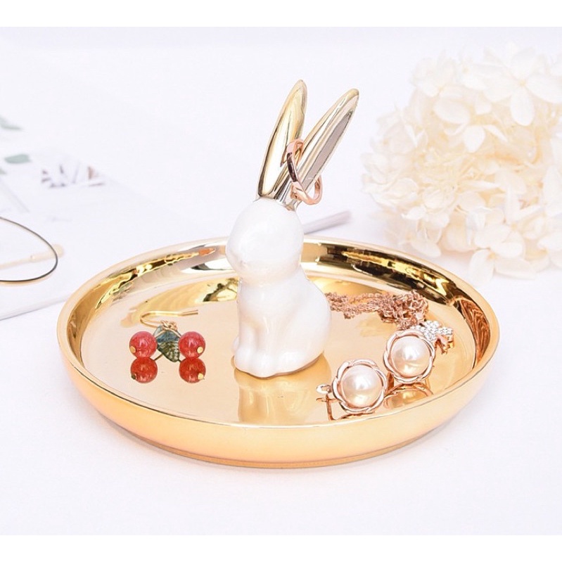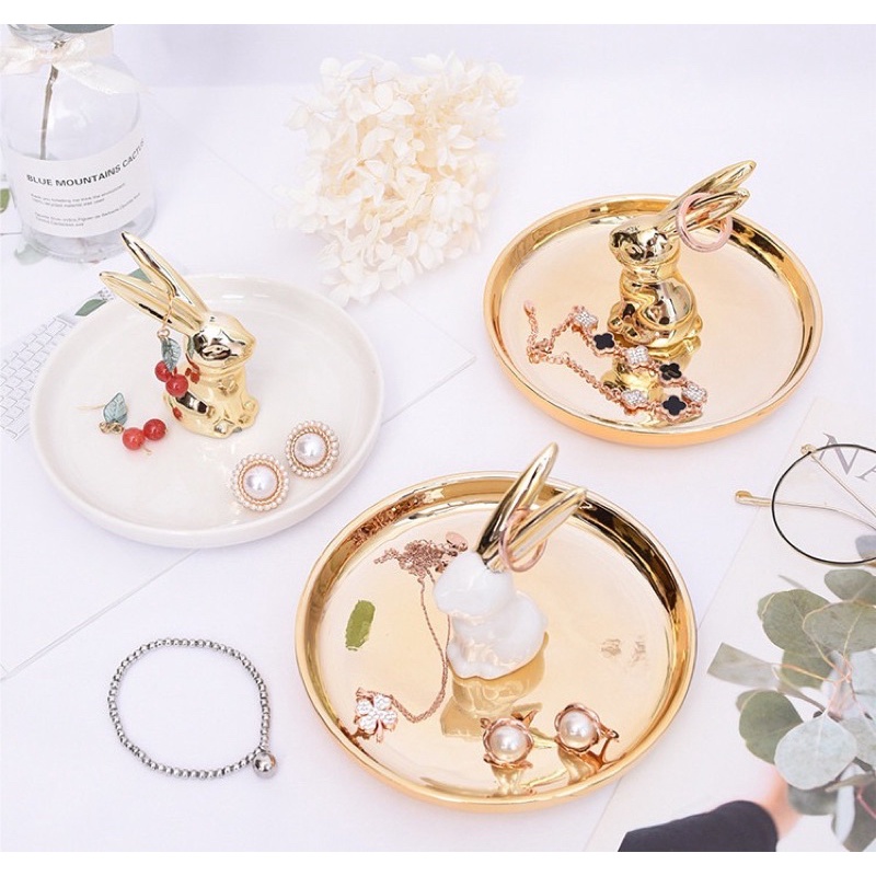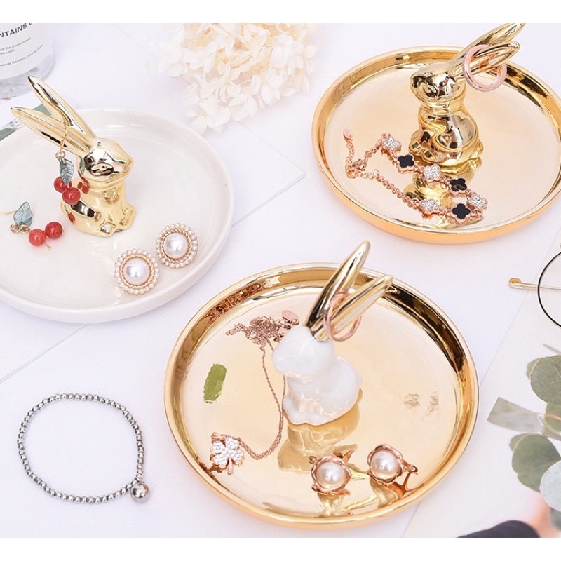 Đĩa chụp ảnh , decor xinh xắn , chất liệu gốm mạ màuThỏ dính với đĩa lun nha mn , ko phải đĩa rời thỏ rời đâu ạ , có 3 màu như hình , dùng chụp trang sức , mỹ phẩm hoặc để bàn make up đựng trang sức nhỏ xinh