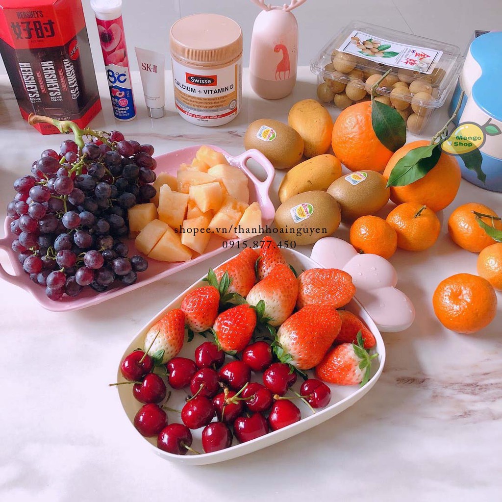 Đĩa quả dâu tây pastel xinh xắn có nắp đựng tăm ( đĩa đựng trái cây , đô ăn vặt xinh xắn )Kích thước: 27,5 * 17 * 3cm