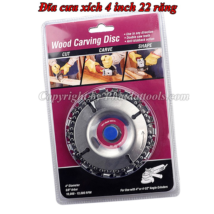 Giới thiệu Đĩa Cưa Xích 4 inch 22 Răng Lắp Cho Các Dòng Máy Mài Cắt Cầm Tay-Cưa Cắt Và Điêu Khắc Trên Gỗ