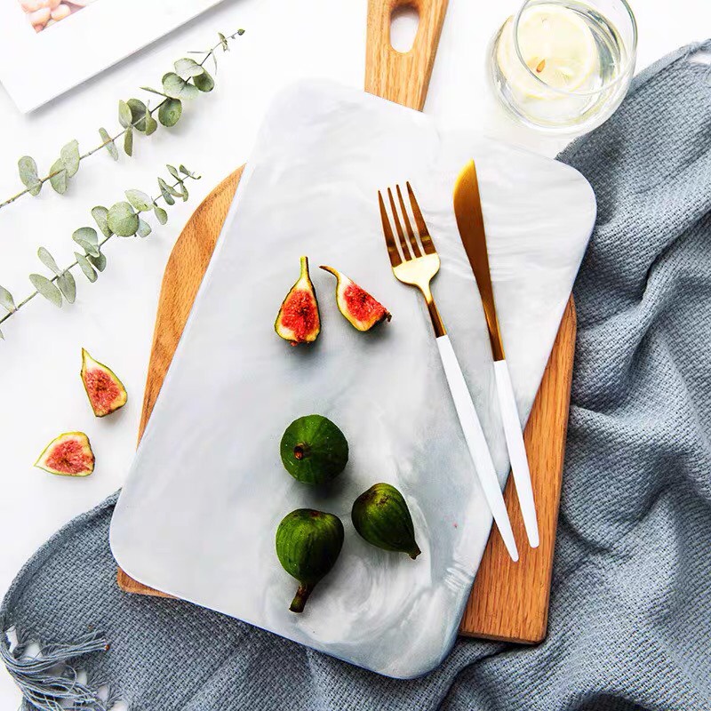 Đĩa đá Marble, phong cách bắc âu sang trọng, đĩa trang trí đồ ăn, để sushi, thớt ăn,decor chụp ảnh,2 size