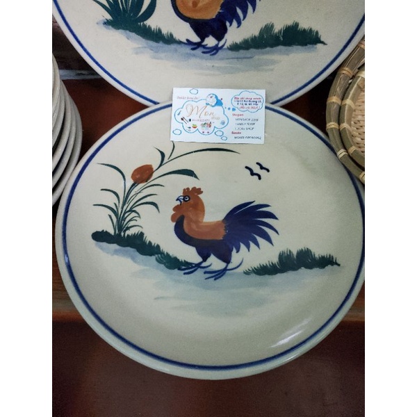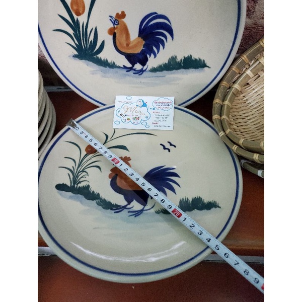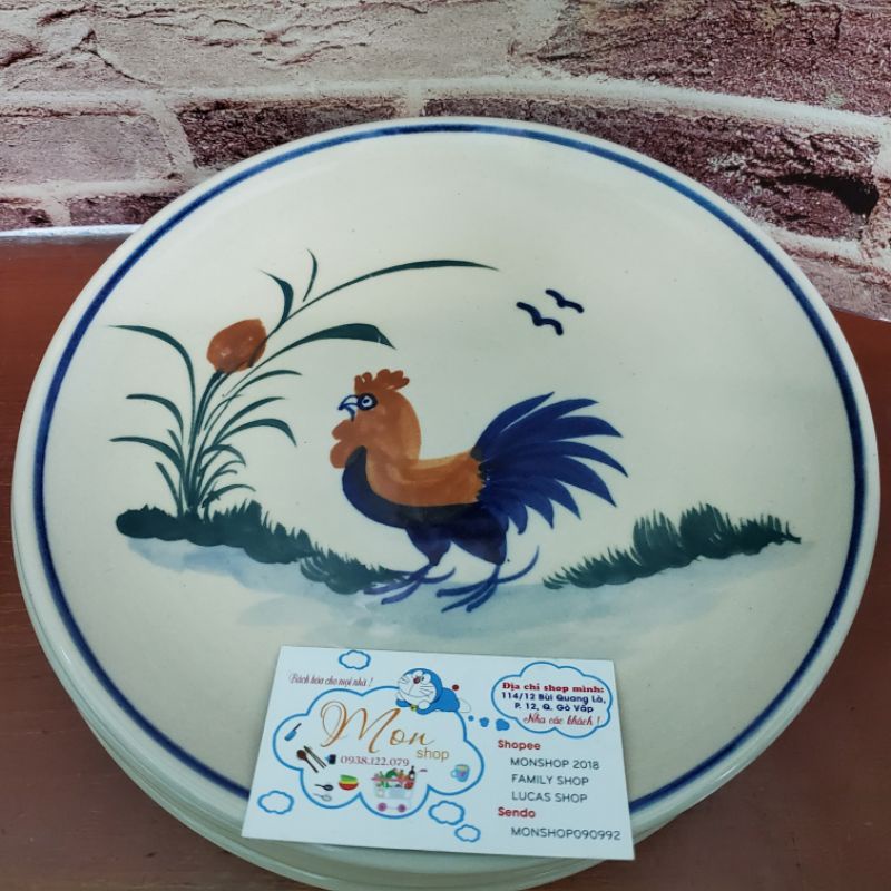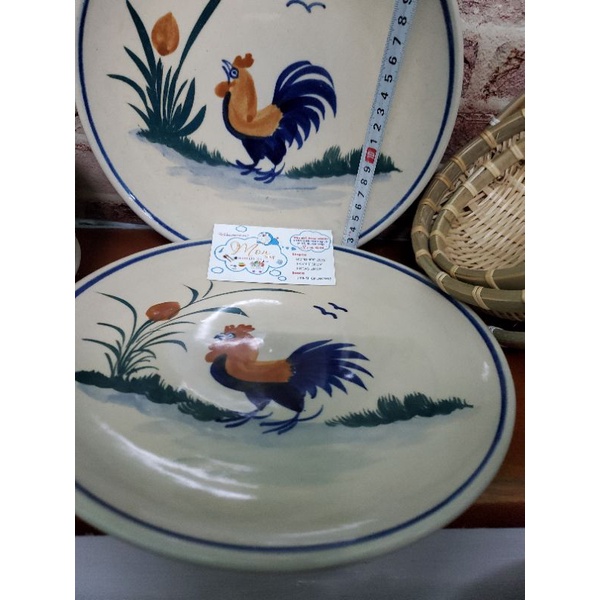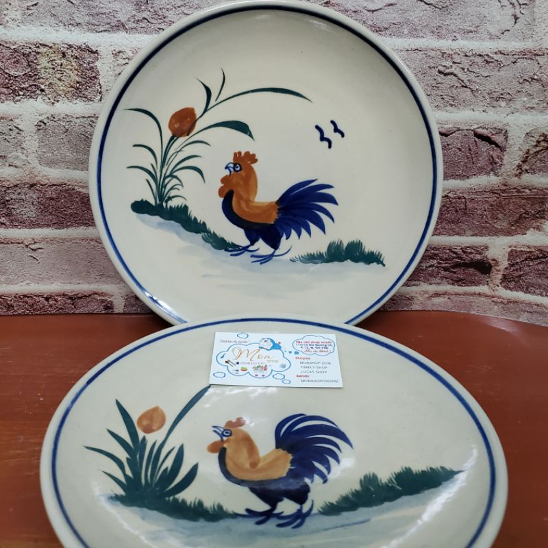 Dĩa họa tiết vẽ con gà trống. Hàng cao cấp vẽ tay mỗi sản phẩm.Dĩa đẹp hàng gốm đá xưa mang đậm chất Dân dã bình dị.