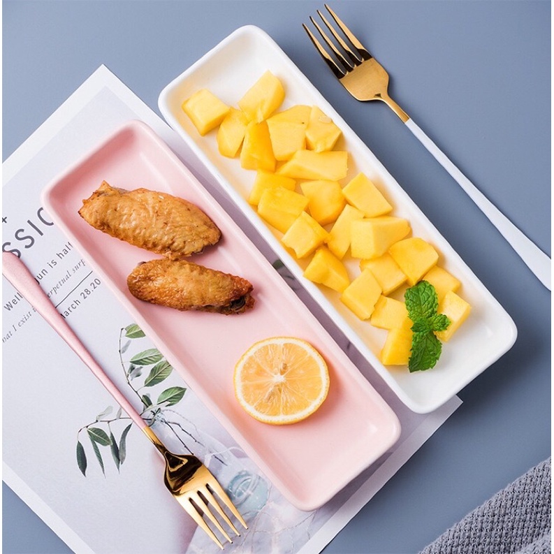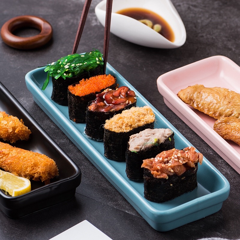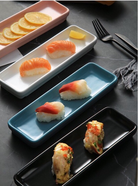 Đĩa chữ nhật để bánh ngọt, hoa quả sushi phong cách Nhật Bản . Các màu : Vàng, xanh, đen, trắngHàng sẵn kho222