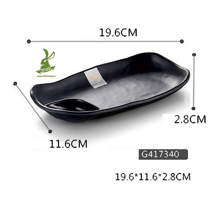 Dĩa đen chữ nhật melamine G417340 có ngăn dùng ăn vặt rất hợp 19.6x11.6x2.8cm