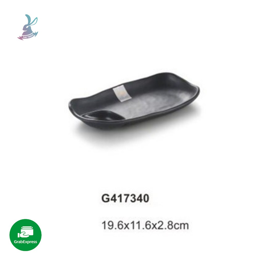 Nhà cửa & Đời sống > Bộ đồ bàn ăn > Dĩa || Dĩa đen chữ nhật melamine G417340 có ngăn dùng ăn vặt rất hợp 19.6x11.6x2.8cmCòn hàng