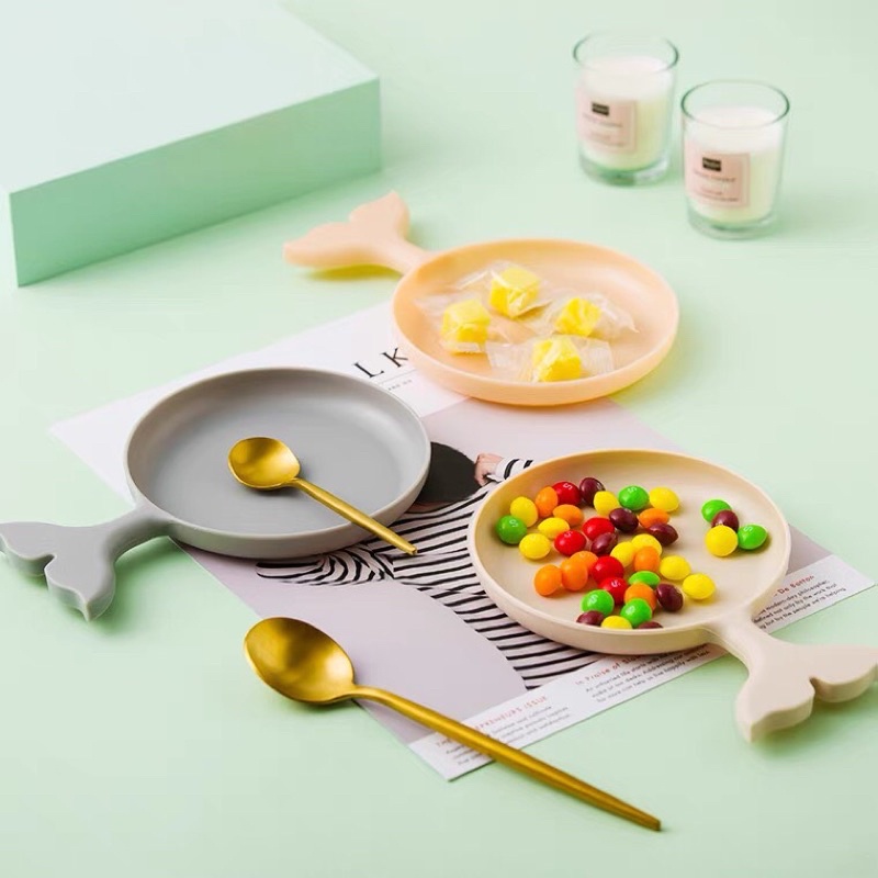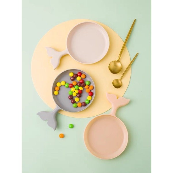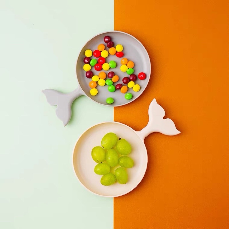 *Tên sản phẩm: Đĩa đựng đồ ăn, trái cây, món tráng miệng, đĩa trái cây decor đẹp tiện lợi chất liệu lúa mạch thân thiện với môi trường*Mô tả sản phẩm:Đĩa đựng thức ăn hình đuôi cá dễ thương, đĩa trái cây đẹp tiện lợi