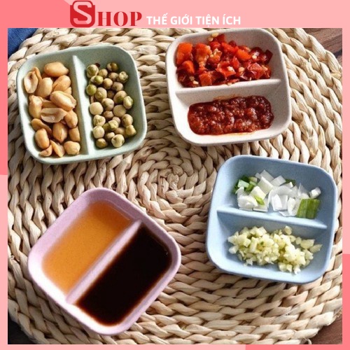 Đĩa Đựng Gia Vị 2 Ngăn - Chén Bát Nhỏ Đựng Nước Mắm, Nước Chấm, Xì Dầu Để Bàn Ăn Lúa Mạch 1580