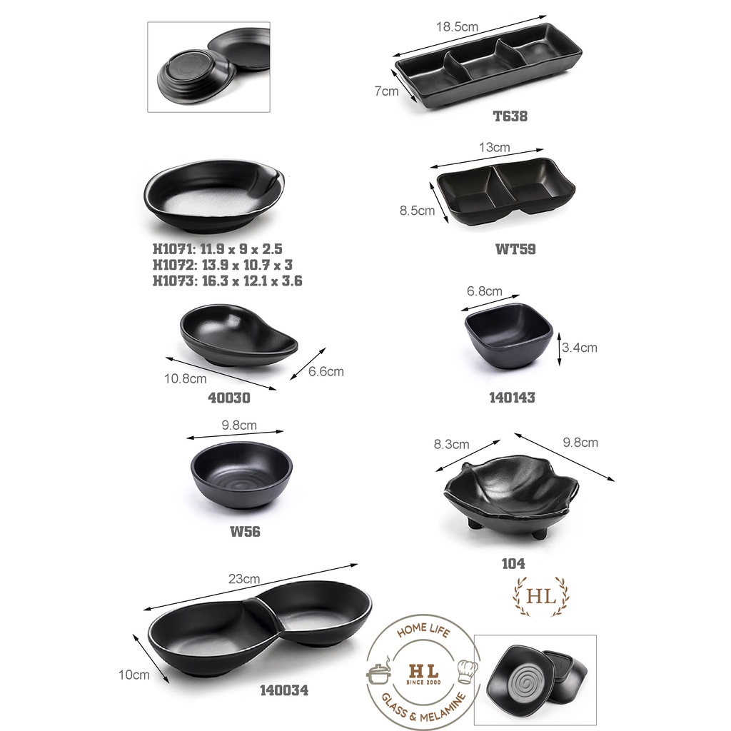 Đĩa đựng gia vị | Đĩa Chấm| Khay gia vị đen nhám | Tiêu Melamine A5 chống cháy siêu bền 1 - 2 - 3 ngăn (Hàng Nhập Khẩu)