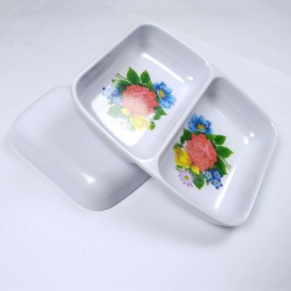 Nhà cửa & Đời sống > Bộ đồ bàn ăn > Dĩa || Đĩa đựng gia vị, muối chấm 2 ngăn Melamine tiện lợiCòn hàng