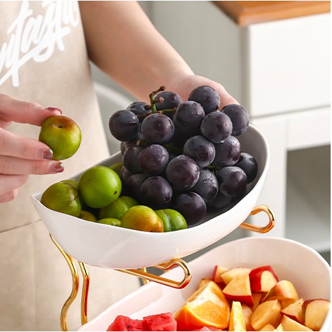 Nhà cửa & Đời sống > Bộ đồ bàn ăn > Dĩa || Đĩa đựng hoa quả, đĩa hoa quả bằng sứ kèm kệ mạ vàng sang trọng phong cách Bắc ÂuCòn hàng