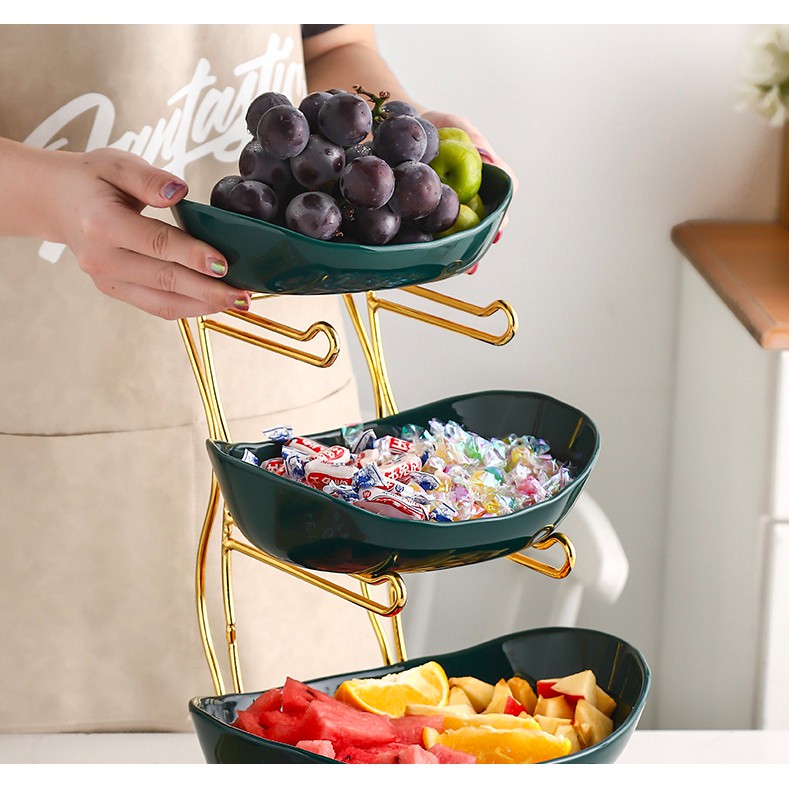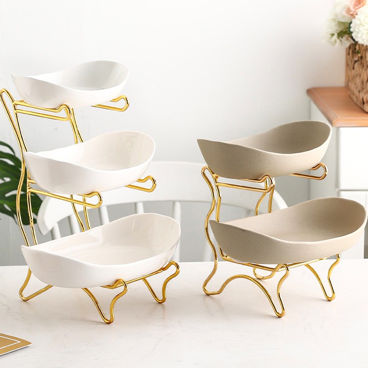 Giới thiệu Đĩa đựng hoa quả, đĩa hoa quả bằng sứ kèm kệ mạ vàng sang trọng phong cách Bắc Âu