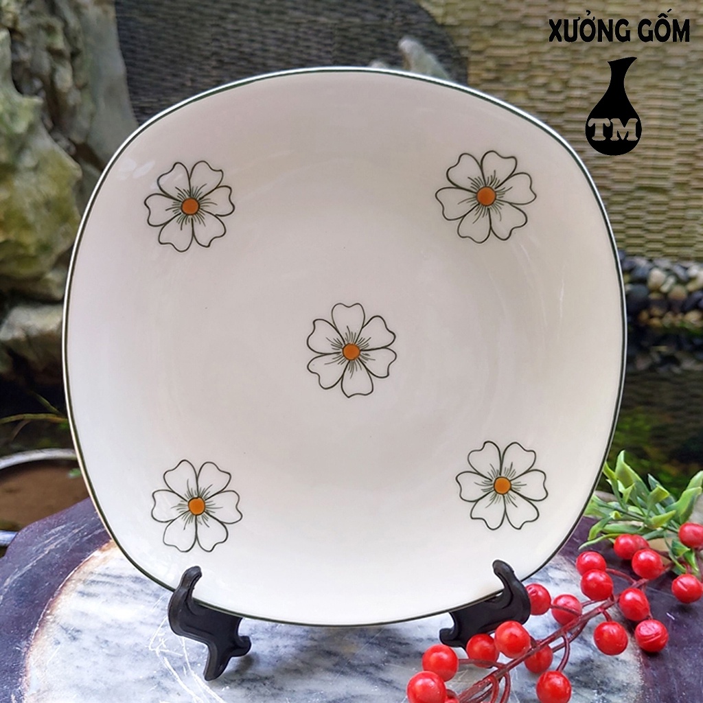 Giới thiệu Đĩa Đựng Thức Ăn Kiểu Dáng Vuông Tròn 22cm Men Trắng Xưởng Gốm TM Bát Tràng