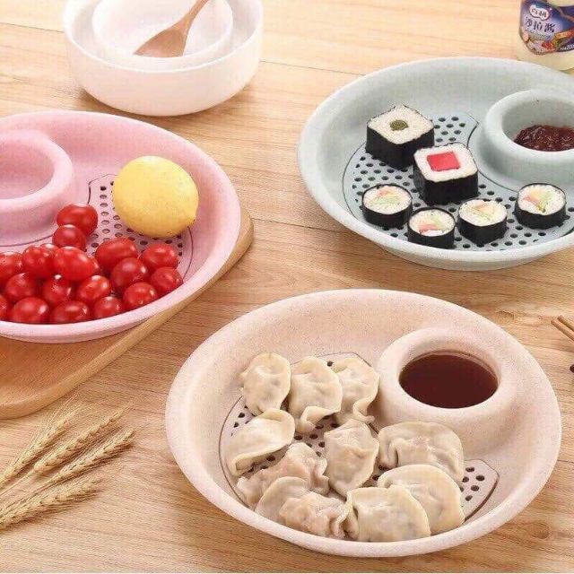 Nhà cửa & Đời sống > Bộ đồ bàn ăn > Dĩa || Đĩa đựng thức ăn lúa mạch có khay nước chấm tiện lợiCòn hàng