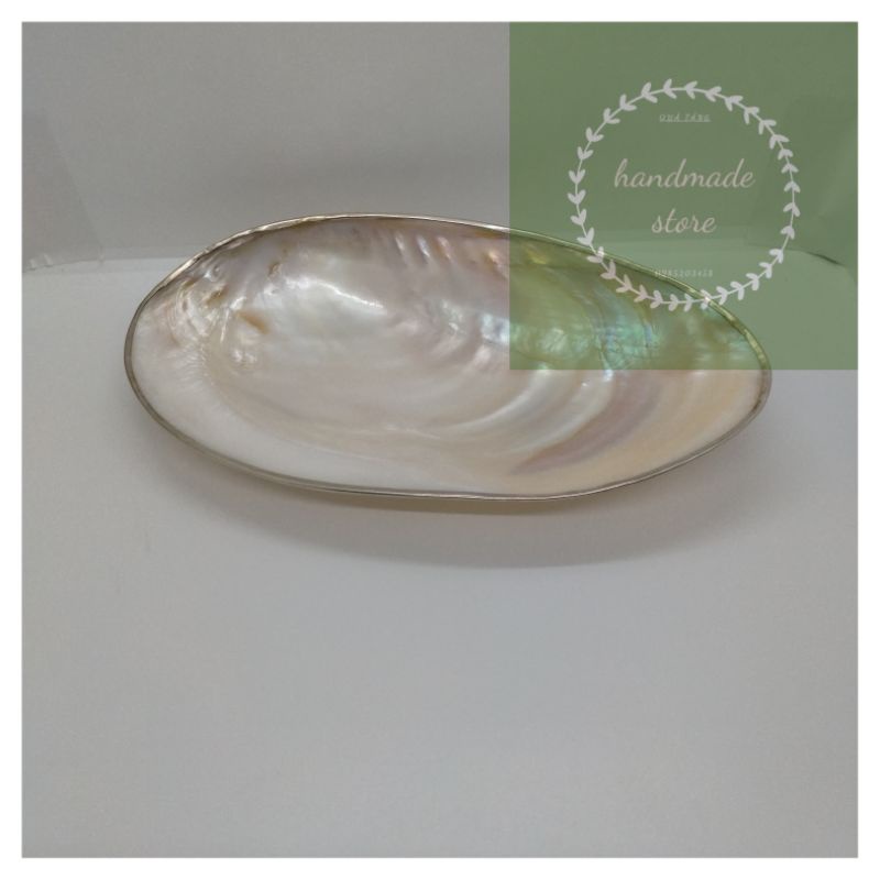 Nhà cửa & Đời sống > Bộ đồ bàn ăn > Dĩa || Đĩa đựng trái cây đồ ăn bằng vỏ trai viền kim loại xi bạc - kệ để trang sứcCòn hàng