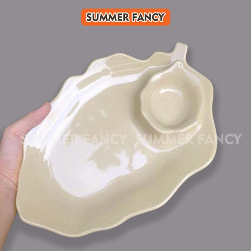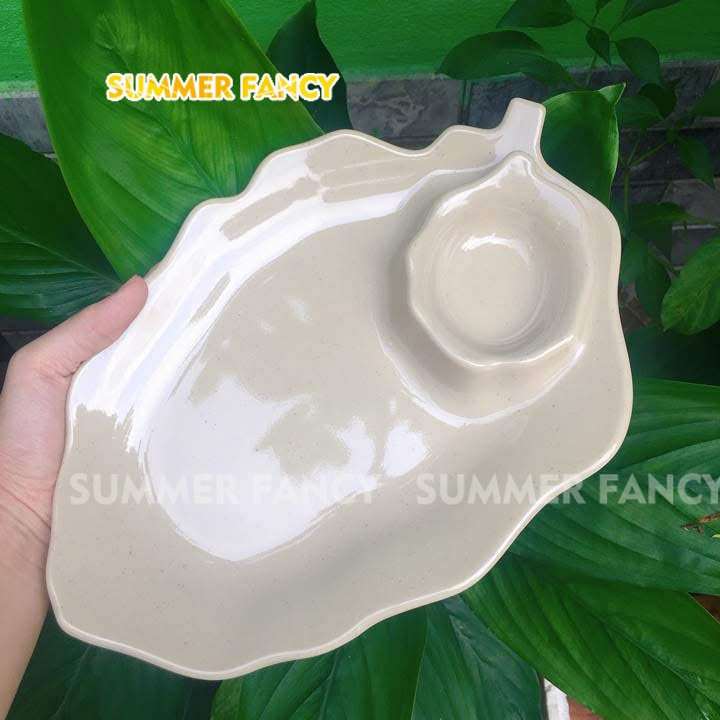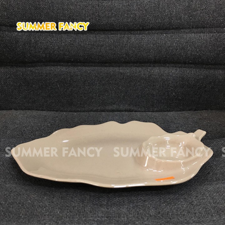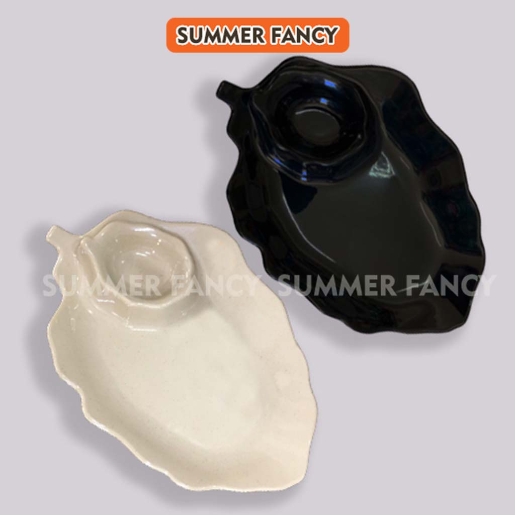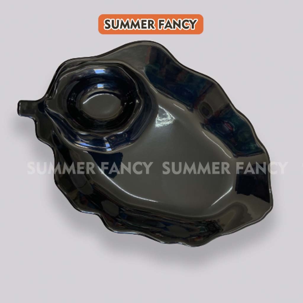 Nhà cửa & Đời sống > Bộ đồ bàn ăn > Dĩa || Dĩa đựng trái cây lá có chén tương 25 x 17 cm cao cấp đĩa phíp đen nâu - Leaf dish F-DTC06Còn hàng