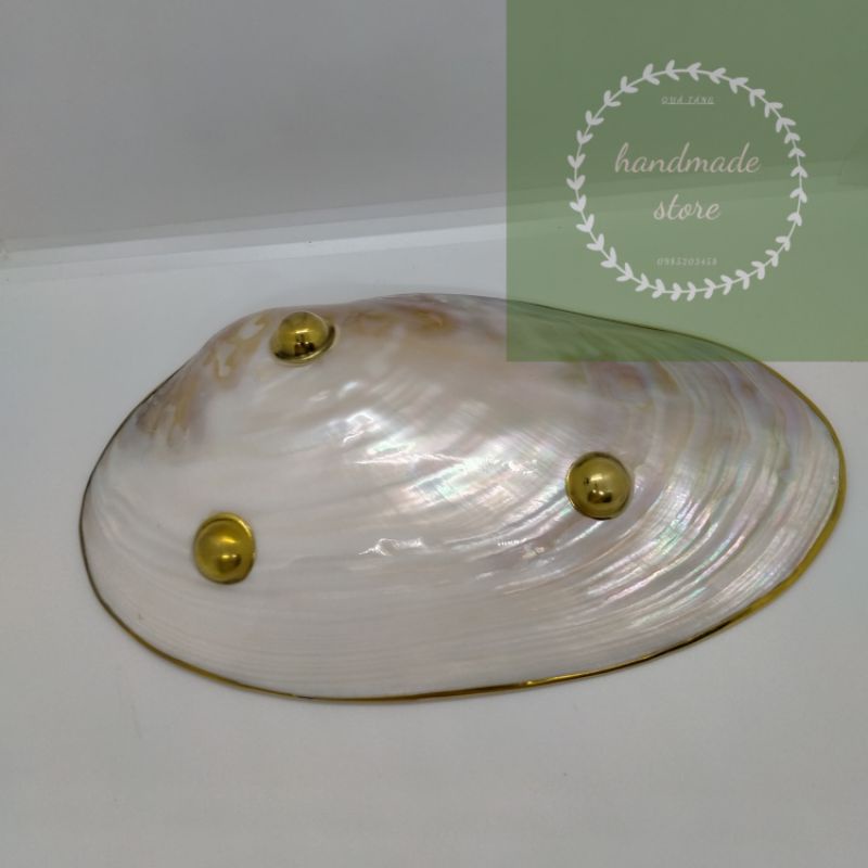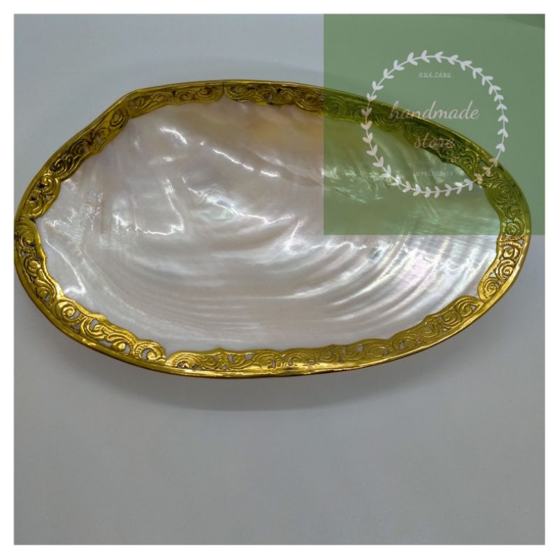 Đĩa đựng trái cây thức ăn bằng vỏ trai chạm hoa xi vàng cao cấp - kệ để trang sức