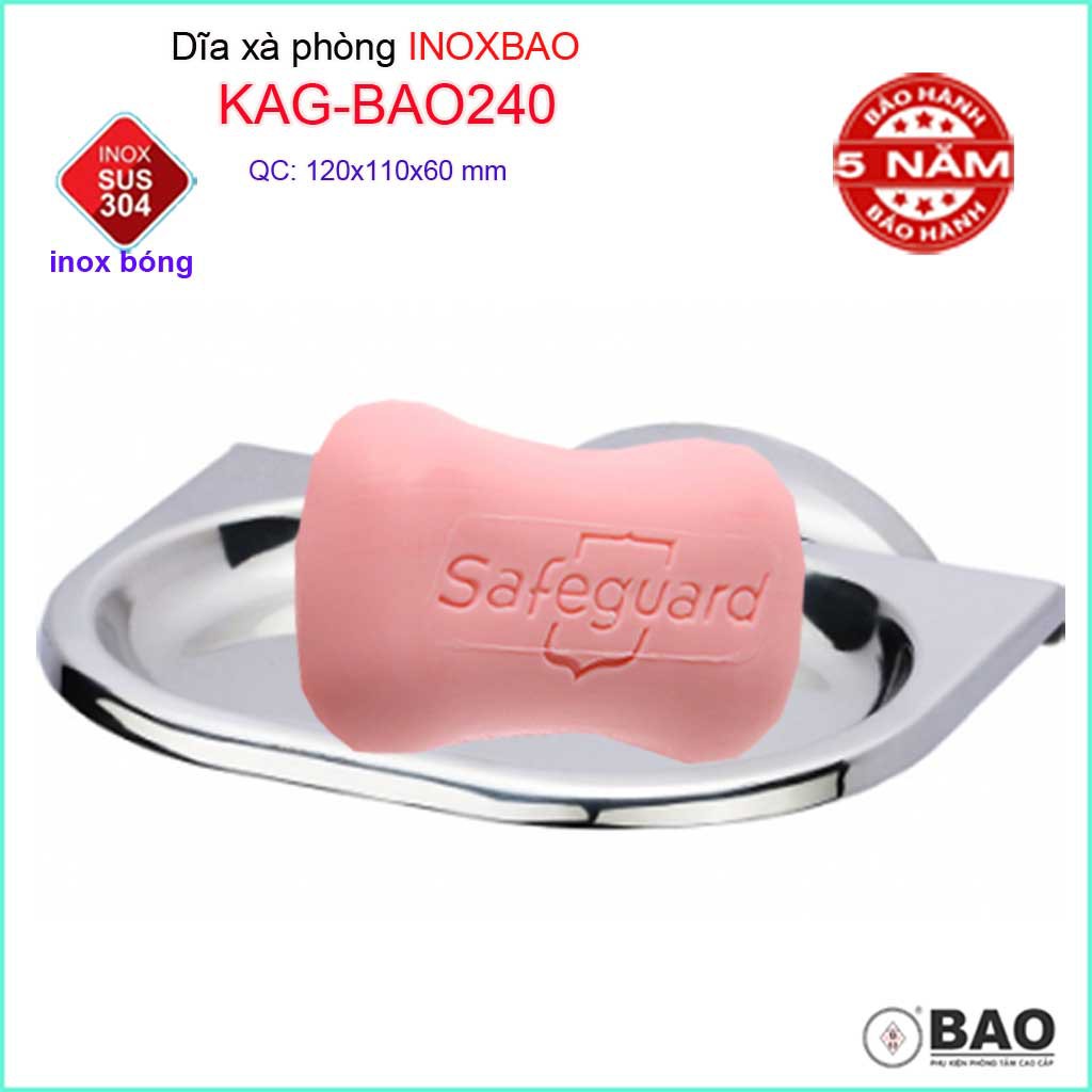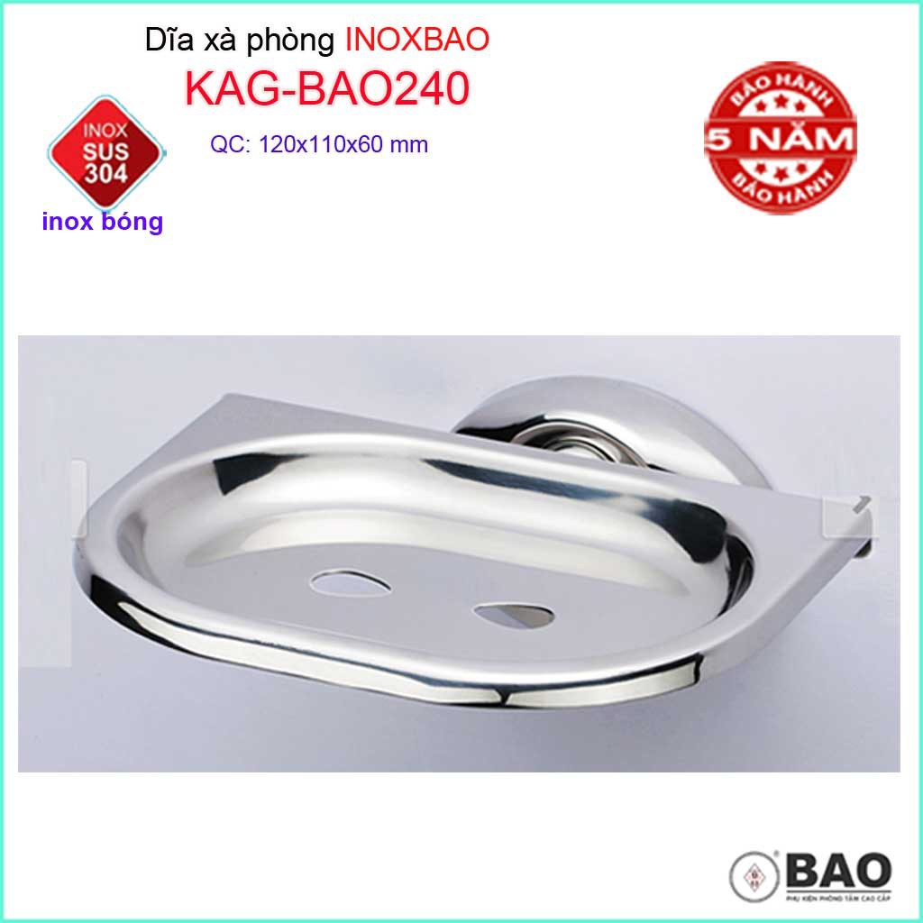 Dĩa đựng xà bông Inox Bảo KAG-BAO240, kệ xà phòng cục SUS304 báng bóng dễ vệ sinh thiết kế đẹp tiện dụng