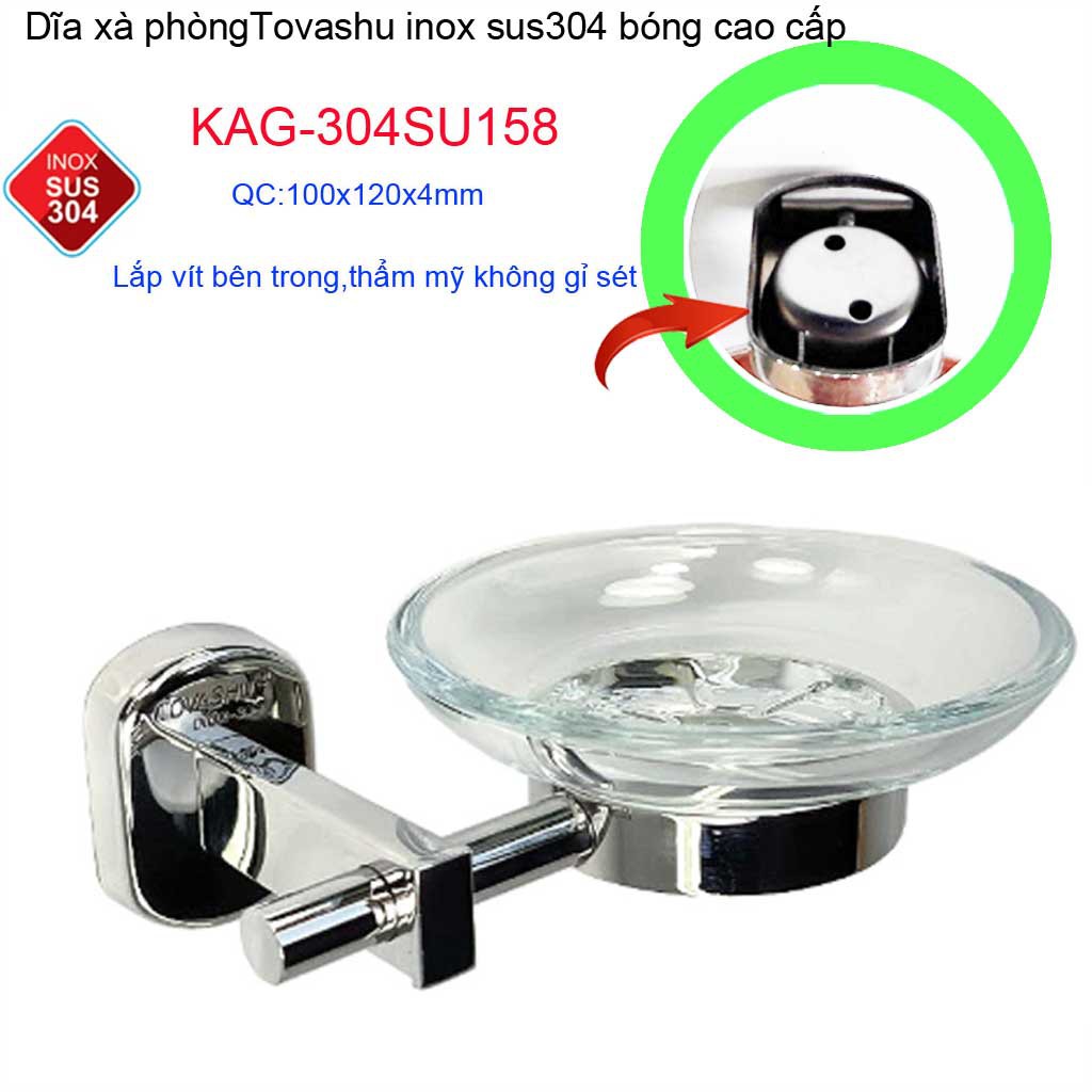 Dĩa đựng xà phòng Tovashu KAG-304SU158, Kệ xà phòng inox SUS304 Nhật Cao cấpChất liệu: Kệ xà phòng Inox cao cấp Tovashu, dĩa xà phòng Tovashu KAG-304SU158 sản xuất bởi chất liệu inox SUS304 cao cấp Nhật Bản, sáng bóng theo thời gian,độ bóng bề mặt cao, hạn chế bám bẩn trở lại
