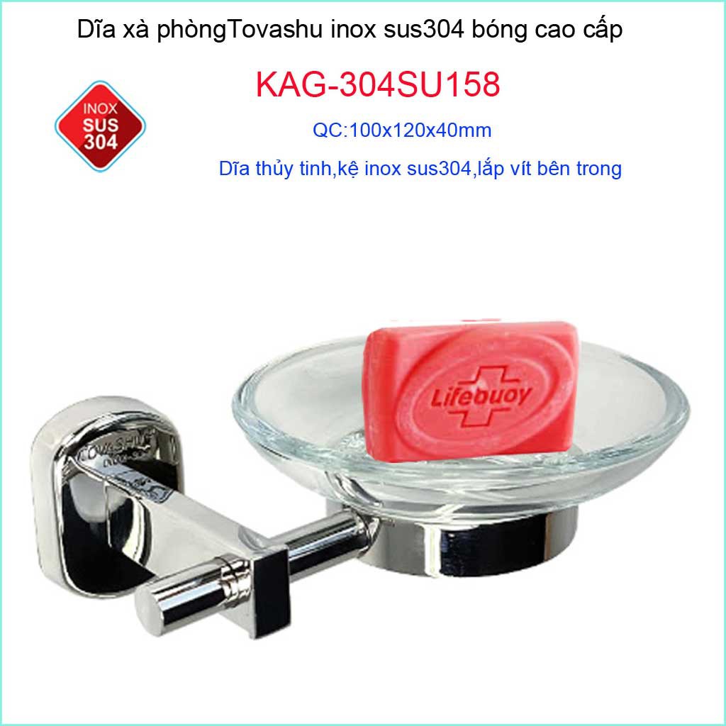 Dĩa đựng xà phòng Tovashu KAG-304SU158, Kệ xà phòng inox SUS304 Nhật Cao cấp
