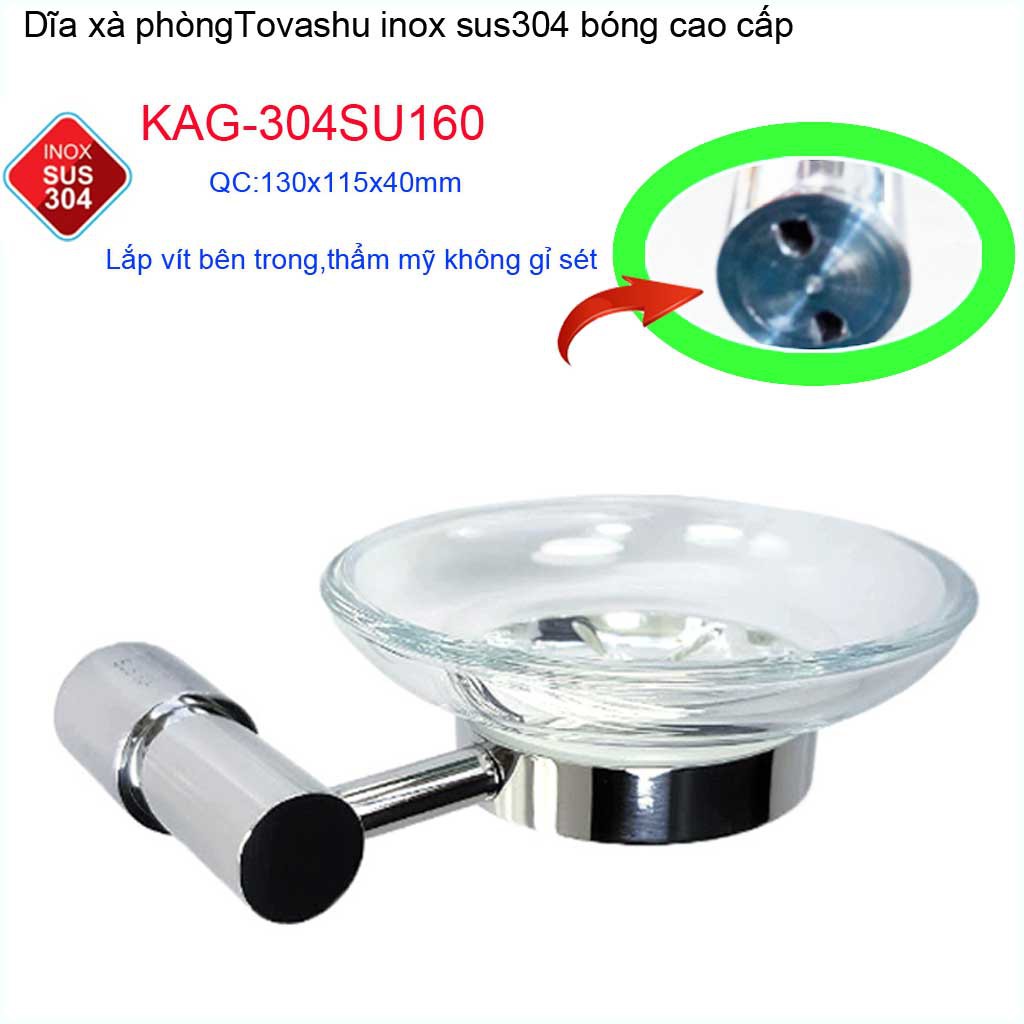 Dĩa đựng xà phòng Tovashu KAG-304SU160, Kệ xà phòng inox SUS304 Nhật Cao cấpChất liệu: Kệ xà phòng Inox cao cấp Tovashu, dĩa xà phòng Tovashu KAG-304SU160 sản xuất bởi chất liệu inox SUS304 cao cấp Nhật Bản, sáng bóng theo thời gian,độ bóng bề mặt cao, hạn chế bám bẩn trở lại