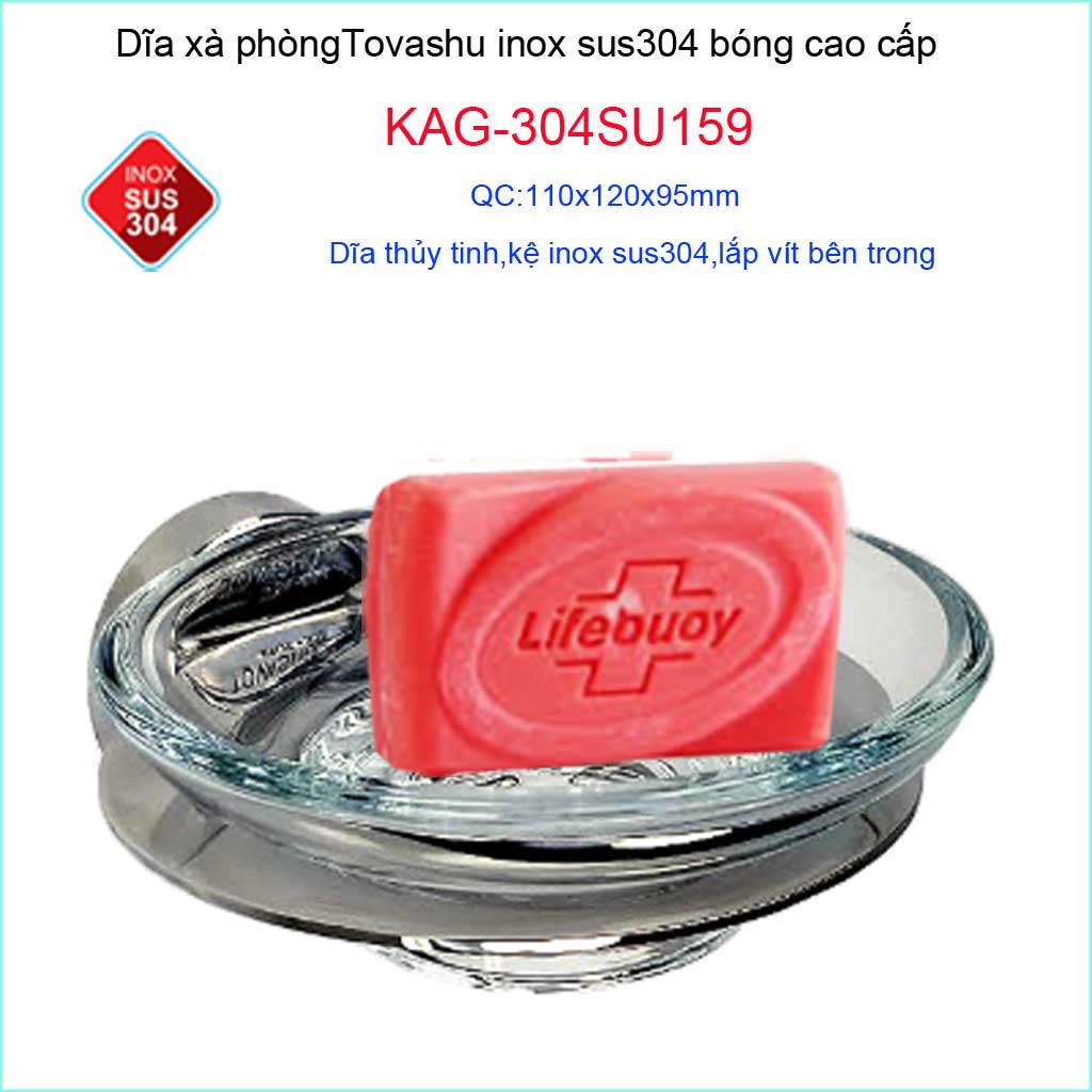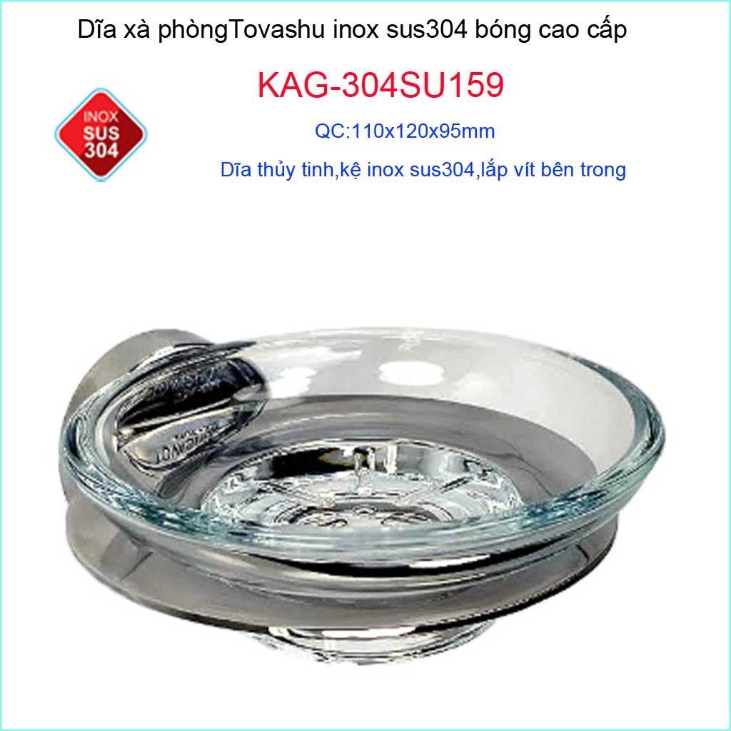 Dĩa đựng xà phòng Tovashu KAG-304SU159, Kệ xà phòng inox SUS304 Nhật Cao cấpChất liệu: Kệ xà phòng Inox cao cấp Tovashu, dĩa xà phòng Tovashu KAG-304SU159 sản xuất bởi chất liệu inox SUS304 cao cấp Nhật Bản, sáng bóng theo thời gian,độ bóng bề mặt cao, hạn chế bám bẩn trở lại