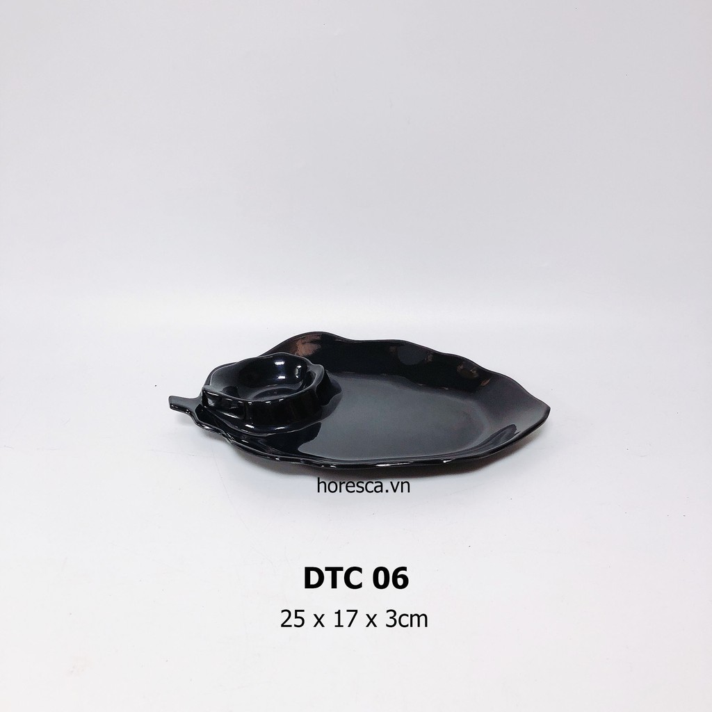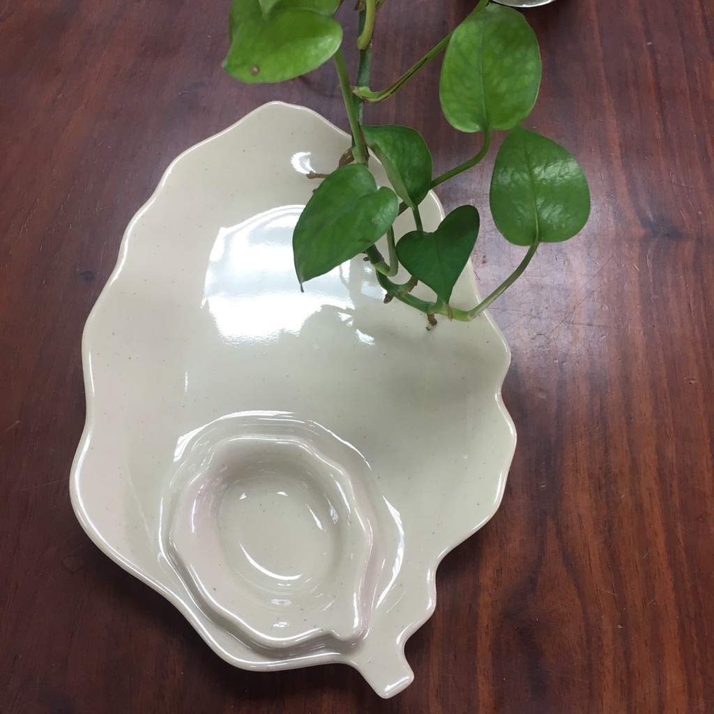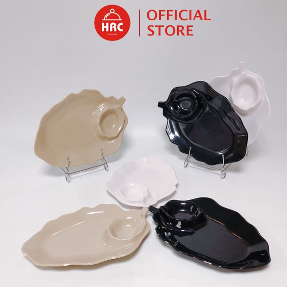 Đĩa Fataco Hình Lá Có Ngăn Chấm Đựng Đồ Ăn Vặt->-> Đĩa hình lá kiểu dáng độc đáo, sang trọng, bắt mắt kèm ngăn đựng sốt phù hợp đựng các món ăn vặt đường phố, gia đình, nhà hàng