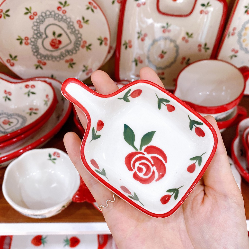 Đĩa gia vị dáng vuông Cherry hoa hồng