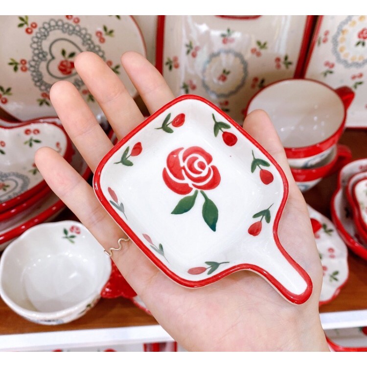 Giới thiệu Đĩa gia vị dáng vuông Cherry hoa hồng