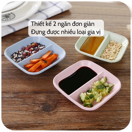 Đĩa gia vị 💜 Đĩa chấm đựng gia vị nước chấm 2 ngăn giá rẻ lúa mạch an toàn cho sức khỏe (giao màu ngẫu nhiên)✴️ CAM KẾT: